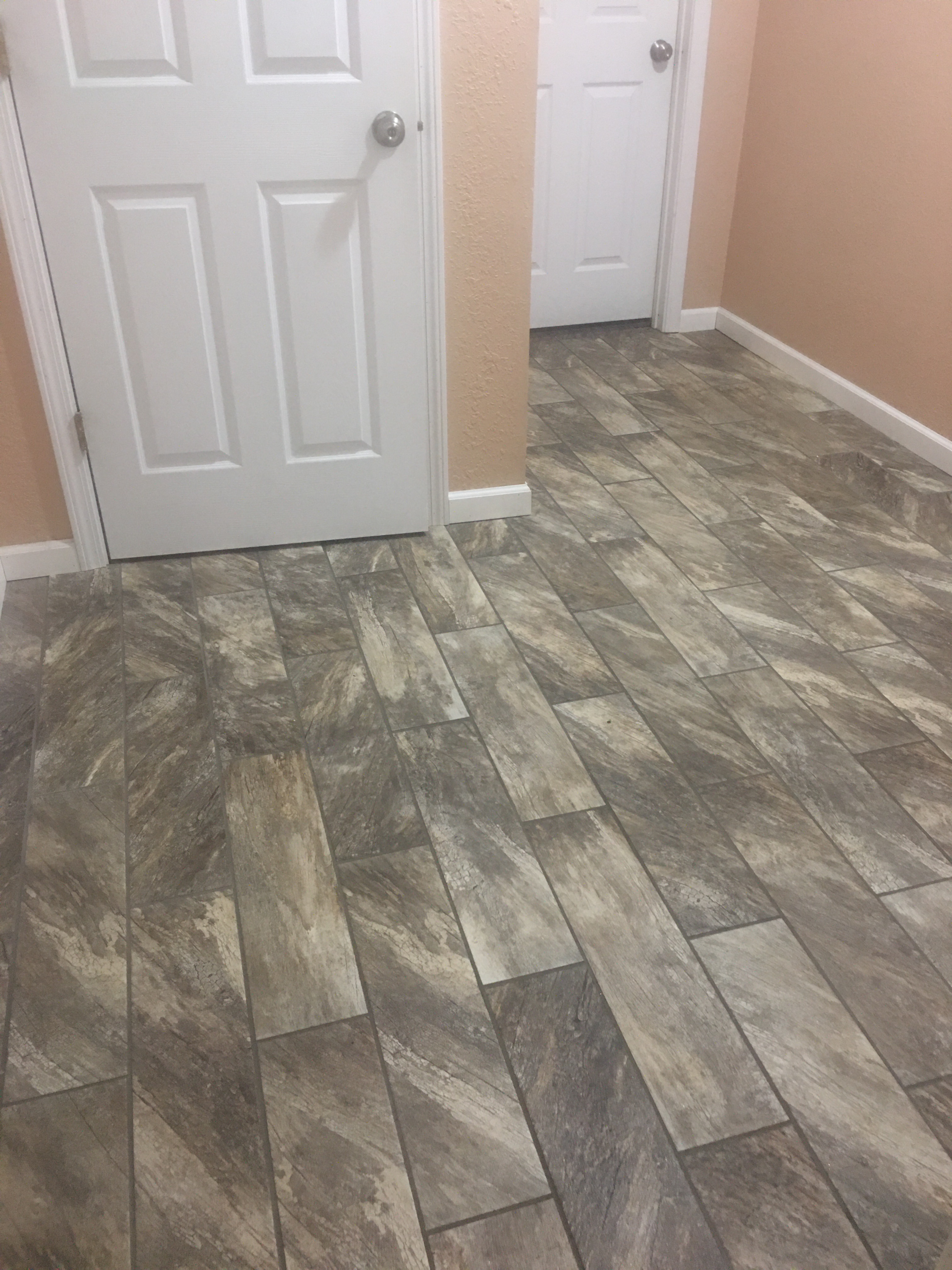 barnwood ceramic tile planks installed in home addition
